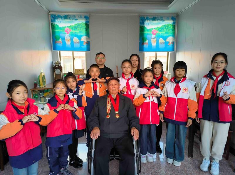 10月26日下午,南通市如东县长沙镇陆河村烈属刘德和老人的家里格外热闹。来自如东县解放路小学的305班学生包楚昀、304班学生张语秦,正围在老人轮椅旁,声情并茂地朗诵《重阳节的声音》。老人布满皱纹的脸上,笑意像花儿一样慢慢绽放。