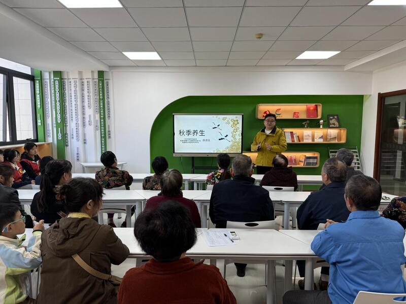 活动伊始,社区特邀南通健康产业研究会中医药专业委员会薛道明主任,为社区老年人带来一场贴近生活、内容实用的秋冬季养生健康知识讲座。薛道明结合中医养生理论与老年人身体特点,围绕饮食调理、适度运动、情绪调节及慢性病预防等方面作了系统讲解。讲座内容深入浅出,贴近老年群体实际需求,现场互动积极,气氛热烈。家住江海佳苑的刘建华爷爷感慨道:“听了讲座才知道,平时很多习惯都不太科学。现在明白了该怎么吃、怎么动,心里踏实多了。”