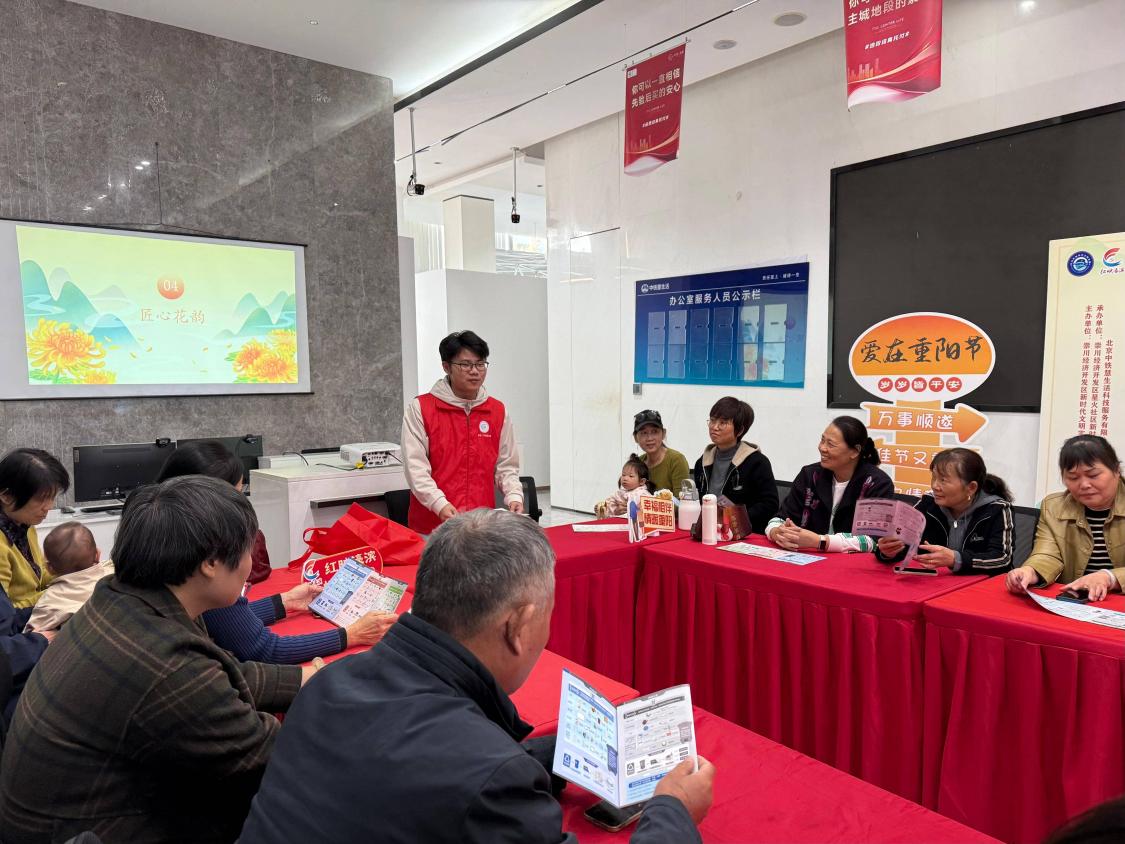中国江苏网讯 金菊吐蕊,丹枫染秋,岁岁重阳又至。10月28日下午,崇川经济开发区新时代文明实践所、星火社区新时代文明实践站联合南通大学生命科学学院莫文隋青年志愿者协会、“生动一小时”微志愿服务团队,在逸品花园小区共同开展“爱在重阳时 岁岁皆平安”重阳节敬老主题活动,以贴心举措绘就孝亲敬长、其乐融融的温馨图景。