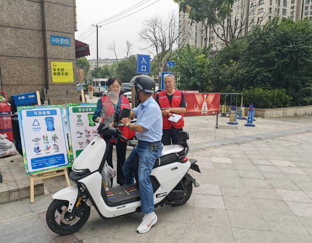 “您好,这是垃圾分类指导手册。厨余垃圾请投绿色桶,废旧电池属于有害垃圾,应放入红色专用箱。”在北城名郡小区的北门和西门,身穿红色马甲的党员志愿者正向居民发放手册,耐心讲解分类知识。为推动垃圾分类深入人心,社区积极发挥党员先锋模范作用,在小区门口设立“宣传岗”,组织党员志愿者提前学习分类标准与常见误区,现场解答居民关于“外卖餐盒如何分类”“旧衣服属于哪类”等具体问题,把宣传阵地建到居民“家门口”,让分类知识随手可及、随处可学。