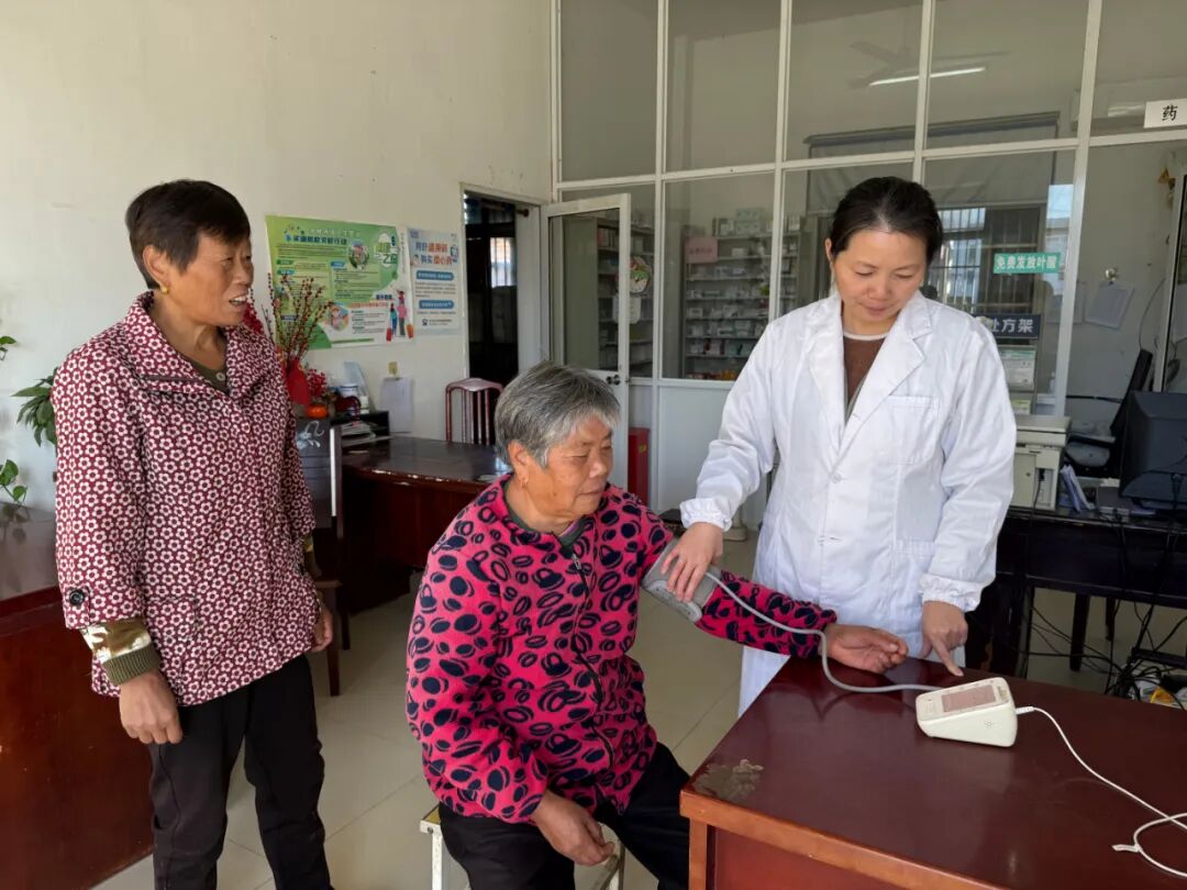 讲座结束后,“免费健康服务”环节随即展开。许医生熟练地为村民测量血压、血糖,仔细记录数据,并根据检测结果给出个性化健康指导。“张婶,您血压有点偏高,平时要少盐少油,多散步。”“李叔,您血糖控制得不错,继续保持这个饮食规律。”志愿者还为村民发放了健康手册和印有养生知识的书签,让大家把健康理念带回家。