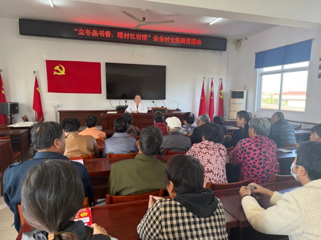 中国江苏网讯 立冬时节,寒意渐浓。为丰富村民精神文化生活,传承农耕记忆,同时关注村民健康需求,11月4日,海门区四甲镇余合村以“立冬品书香,暖村忆农情”为主题,举办了一场集阅读分享与健康服务于一体的全民阅读活动,吸引了全村老中青三代近30名村民踊跃参与。