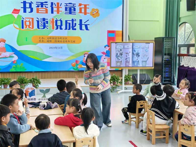 此次活动是春晖社区推进全民阅读进社区的精彩实践。通过寓教于乐的形式,将环保与阅读有机结合,让孩子们在快乐体验中收获成长。春晖社区表示,今后将继续携手通师二附城市嘉苑幼儿园,开展更多丰富多彩的活动,为孩子们营造一个充满书香与绿意的成长环境,助力孩子们全面发展。(王凡)