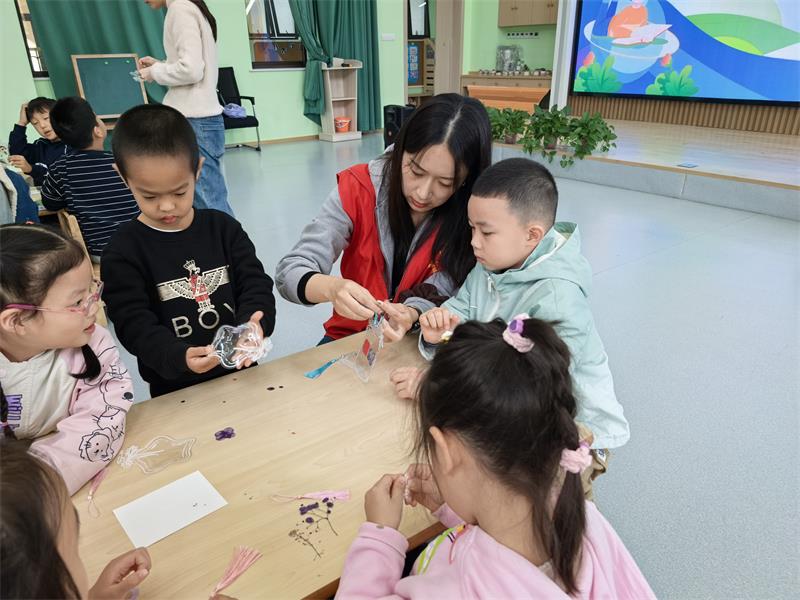手工干花书签制作环节,则充分考验了孩子们的动手能力与创造力。在社区工会志愿者的指导下,孩子们利用提前准备好的干花材料,发挥奇思妙想,制作出独一无二的书签。这一过程不仅提升了孩子们的审美能力,更让他们领略到废旧物品也能创造价值。