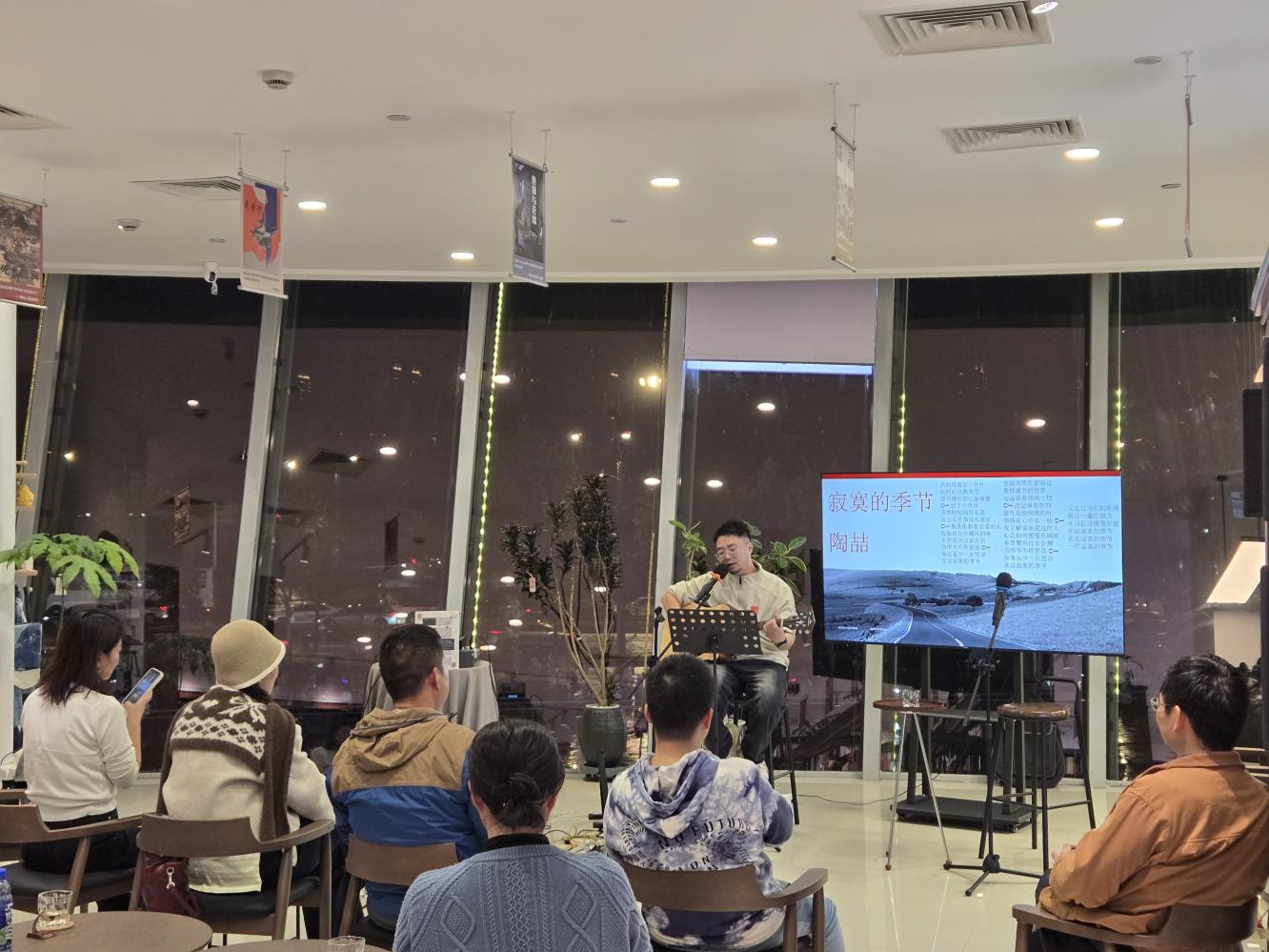 活动在《寂寞的季节》纯音乐中缓缓拉开帷幕。主持人以简洁的语言介绍本次活动主题,融合立冬、阅读与音乐三重元素,阐释其在当代生活中的文化意义。随后,江苏省全民阅读推广人成然以一曲《如果当时》作为序曲,用歌声唤起观众对“时间”的初印象,自然衔接至《时间之书》中对时光流逝的探讨。