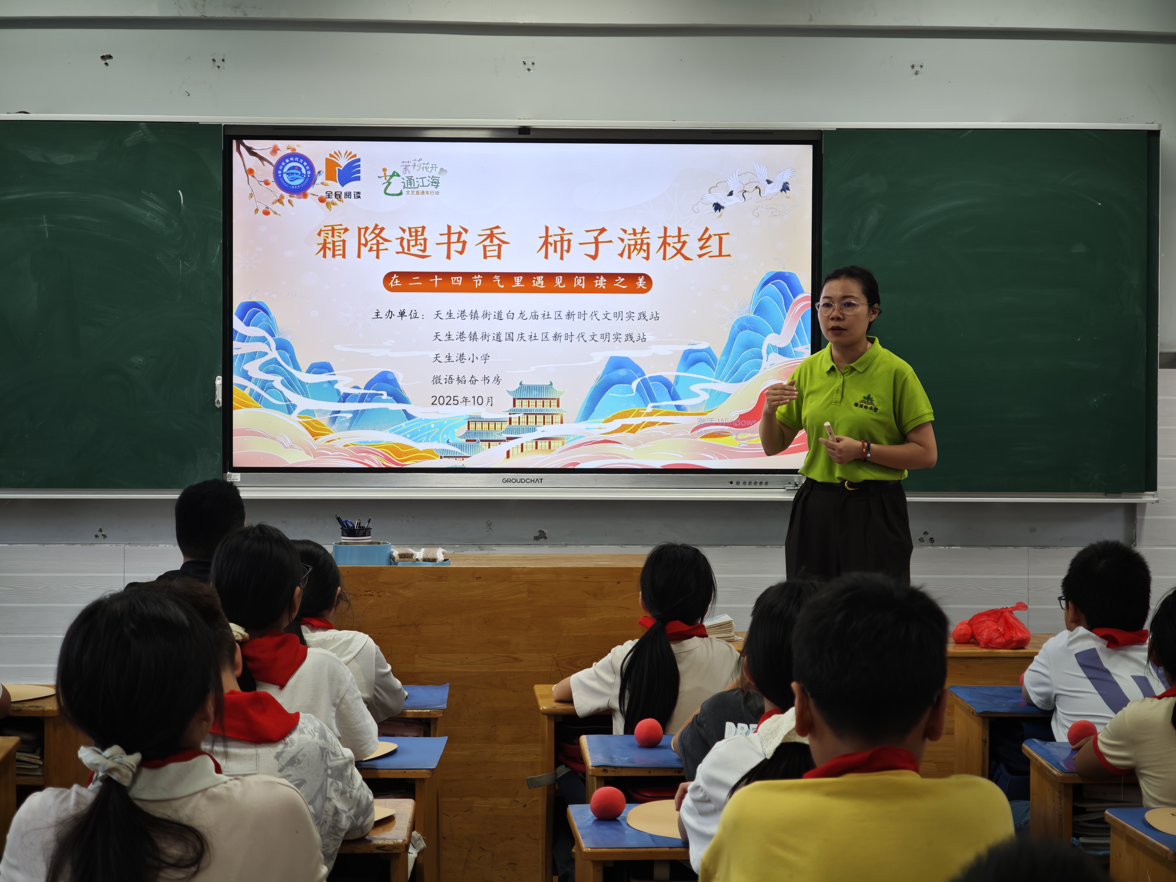 中国江苏网讯 霜叶漫卷秋色,红柿缀满枝头,秋末最富诗意的霜降节气即将到来。为引导同学们在自然时序更迭中解码时光奥秘,于传统文化浸润中汲取成长力量,近日,天生港镇街道白龙庙社区和国庆社区新时代文明实践站、关工委、共青团、工会携手天生港小学,共同举办“霜降遇书香,柿红绘秋意”主题活动。这场融知识探索、诗意品鉴与创意实践于一体的秋日盛会,为同学们的童年留下了一段浸润着文化温度与自然之美的珍贵记忆。