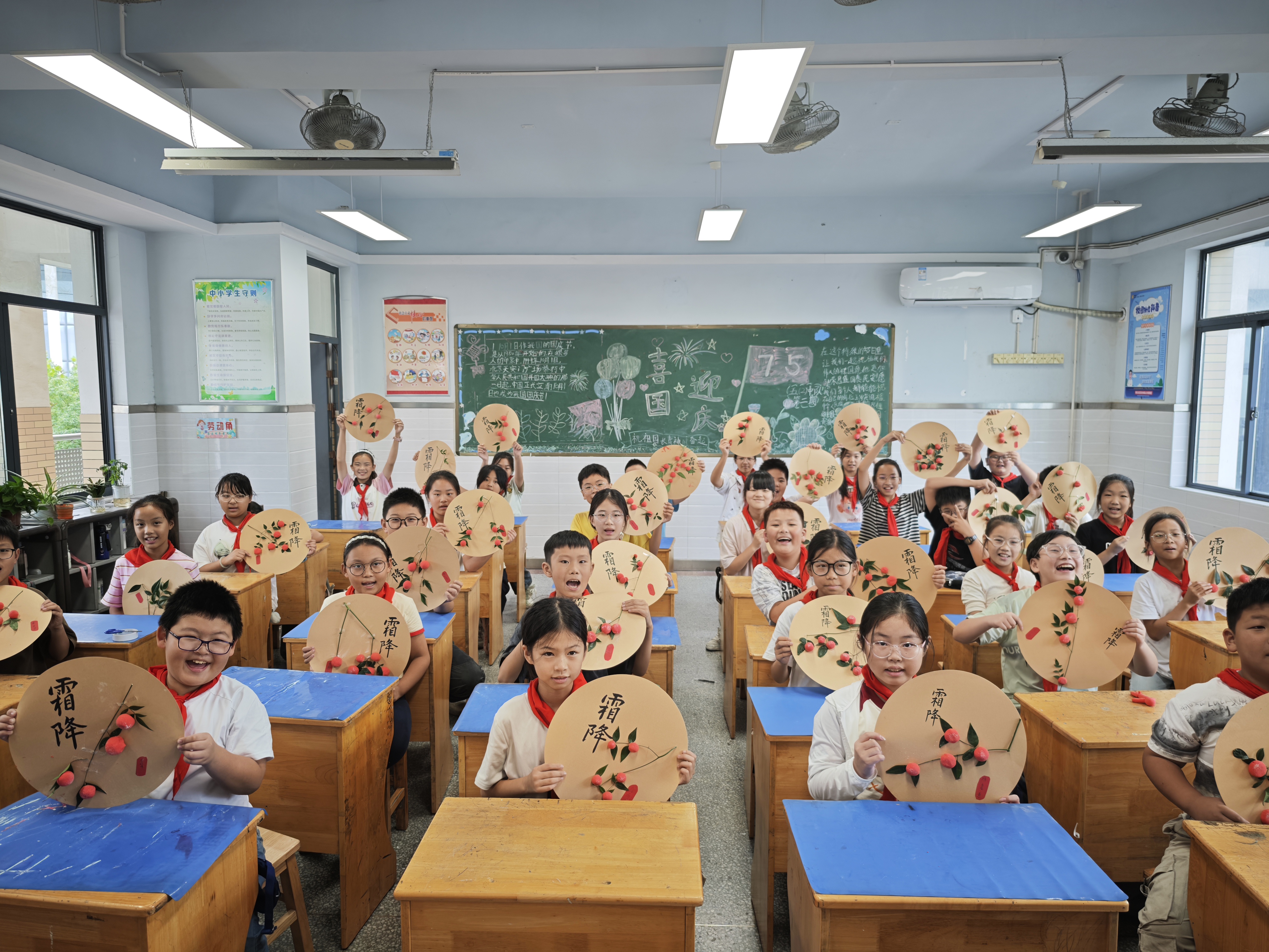 “大家有没有闻到桂花香?”阅读推广人说:“桂花多在秋分开放,霜降后花香渐淡,这正是季节流转的信号。”随后,围绕“霜降三候”展开讲解,让同学们认识“豺乃祭兽”“草木黄落”“蛰虫咸俯”背后的物候智慧;又分享了柿子、萝卜等节令美食,结合自然变迁,让大家在轻松的氛围中,读懂霜降的特点,感受时节流转的独特魅力。