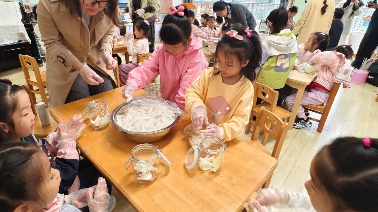 活动中,志愿者分组带领孩子们体验蔬菜腌制的传统技艺,完成封坛等步骤,让小朋友们在动手协作中体会劳动的乐趣与节气的生活智慧。活动在声情并茂的诗歌朗诵中圆满落幕。