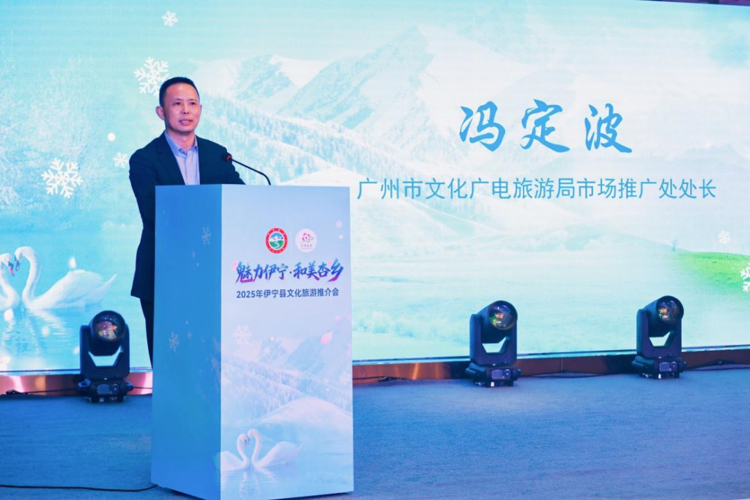 活动在充满伊犁民族风情的歌舞表演中拉开帷幕,灵动的舞姿与悠扬的旋律瞬间将现场嘉宾带入“塞外杏乡”的独特意境。广州市文化广电旅游局市场推广处处长冯定波在致辞中表示,广州作为海上丝绸之路重要发祥地和“美食之都”,与素有“塞外江南”美誉的伊宁县在文旅资源上互补性极强。此次推介会搭建了宝贵的交流平台,期待以活动为契机,深化两地资源互享、产品互推、客源互送的全方位合作,让广州的历史底蕴与伊宁县的自然人文之美碰撞出更多火花,共同推动文旅产业高质量发展。