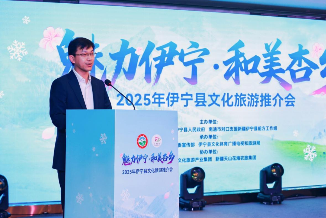 伊宁县委副书记、南通援疆工作组组长施张范在致辞中深情推介伊宁县的独特魅力,并盛情邀请广东的朋友们前往伊宁游玩。他表示,伊宁县作为古丝绸之路北道重镇,拥有托乎拉苏草原、天山花海、天鹅泉湿地公园等优质文旅资源,四季风光各有韵味——春有杏花如雪,夏有草原叠翠,秋有河谷鎏金,冬有天鹅翩跹。在新时代党的治疆方略指引下,伊宁县正全力将生态优势转化为发展优势,此次带来的不仅是四季美景的邀约,更有诚意满满的合作机遇。