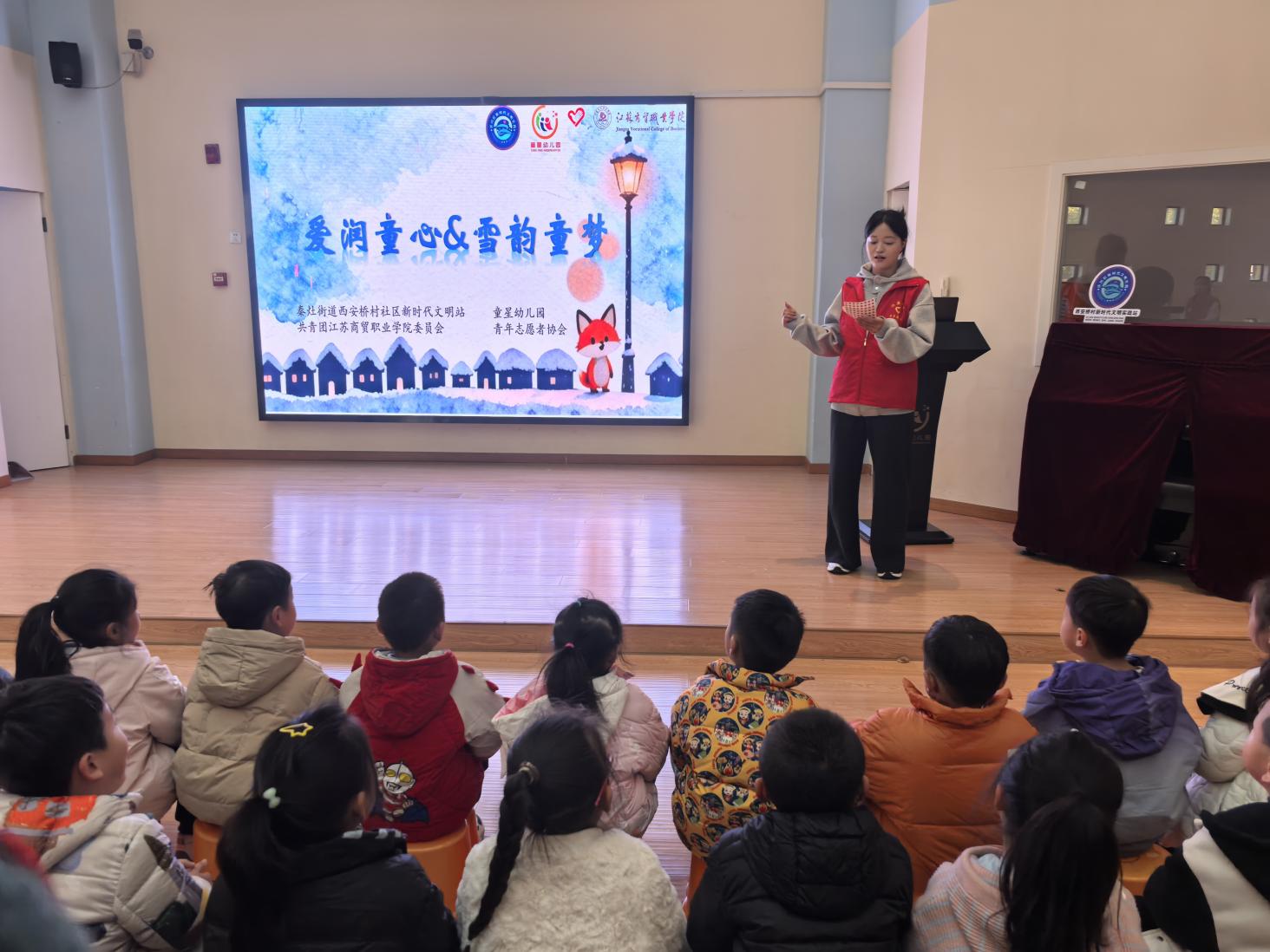 中国江苏网讯 小雪捻起霜华,童心裁出童话。当冬日的微风捎来小雪的讯息,当童真的眼眸盛满对世界的好奇。11月18日,秦灶街道西安桥村社区新时代文明实践站联合商贸学院青年志愿者协会、退役军人志愿服务队一同走进童星幼儿园,结合二十四节气之小雪,以“爱润童心 雪韵童梦”为主题,为孩子们打造了一场兼具文化韵味与温暖质感的公益活动。这场融合了科普、表演、手工与互动的冬日之约,让传统文化在欢声笑语中生根,让志愿温情在指尖流转。