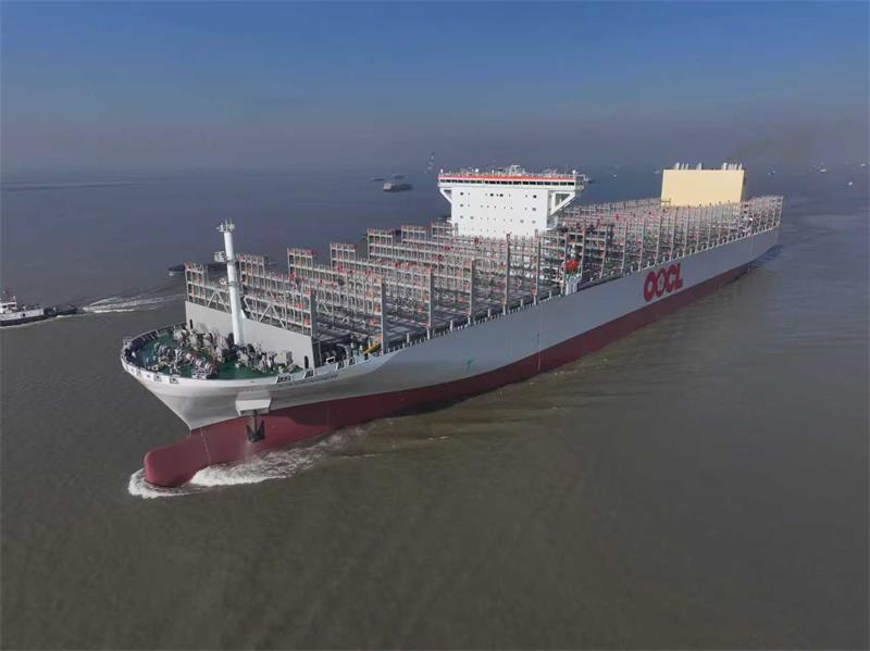 “南通川崎426”轮船长366.99米,型宽51米,载重吨达16万吨,最大载箱量16828标准箱,是目前可通航巴拿马运河新闸的最大级别集装箱船之一。该船型融合了多项前沿节能技术,单箱能耗指标达到国际领先水平,是我国船舶工业迈向高端化、绿色化的重要成果。