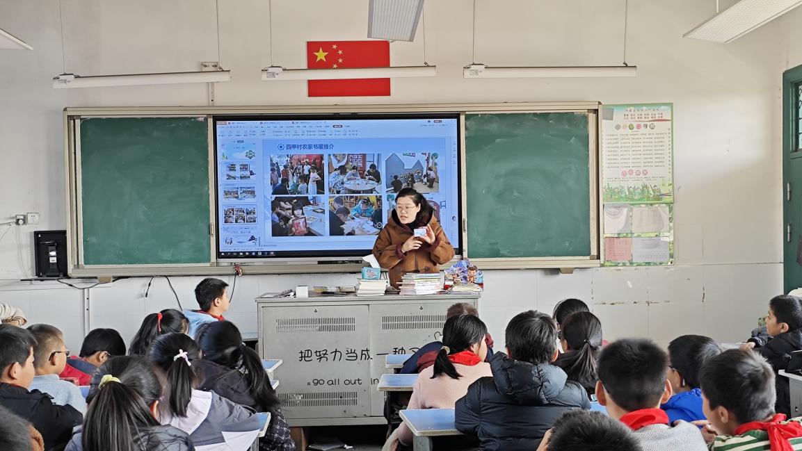活动最后,四甲村农家书屋管理员朱欣怡向同学们详细介绍了农家书屋的藏书情况、开放时间及借还书流程,邀请大家课后、节假日走进书屋借阅图书。随后,书屋与五年级(一)班正式达成书香结对,朱欣怡将数十本精选好书送到班级图书角,建立“定期流转、持续更新”的图书共享机制,助力同学们养成持续阅读的好习惯。