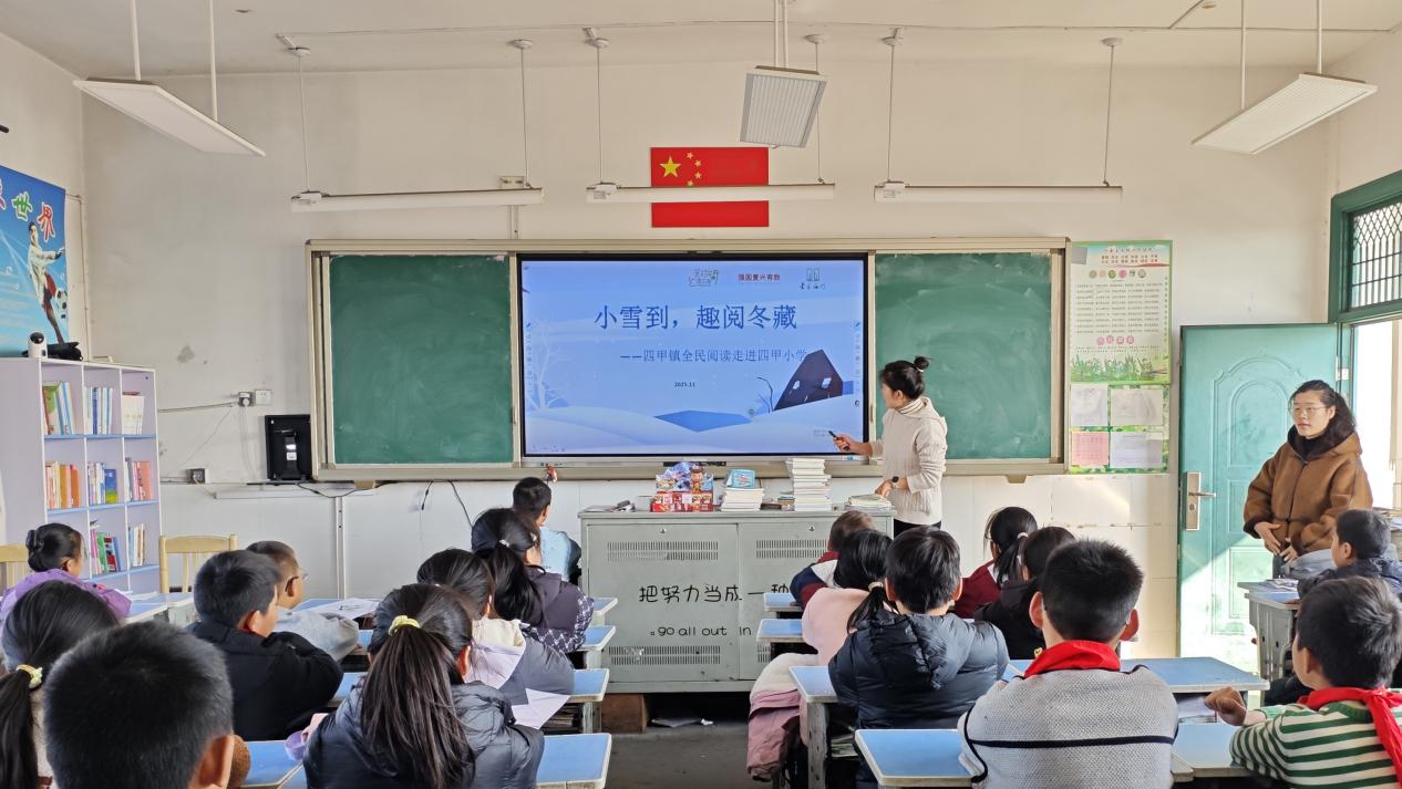 中国江苏网讯 朔风始起,万物冬藏,恰是小雪好时节。11月19日,南通市海门区四甲镇农家书屋走进四甲小学开展“农家书屋进校园,书香结对润童心”主题阅读活动,活动将传统节气与馥郁书香交织共鸣,为孩子们带来了一段趣意盎然的冬日阅读旅程,助力青少年弘扬传统文化,培养长期阅读习惯。
