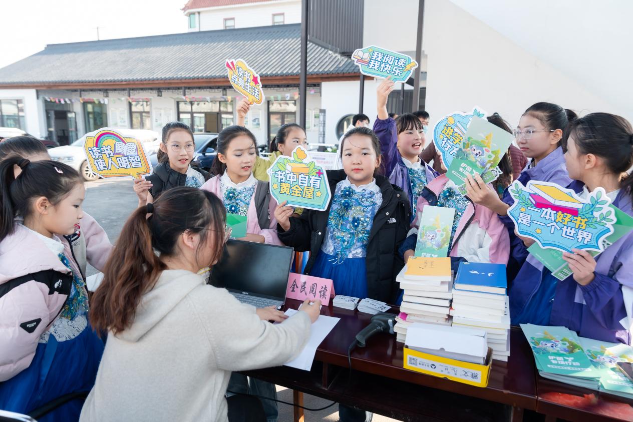 中国江苏网11月23日南通讯 冬日融融,暖意盎然。11月21日,古朴雅致的王灶河老街迎来了一场别开生面的文化盛宴。为护航青少年健康成长,营造“多读书、读好书、善读书”的浓厚氛围,正余镇举办“绿书签·护苗”户外宣传暨亲子阅读活动,为这个冬天增添了一抹温暖的书香。
