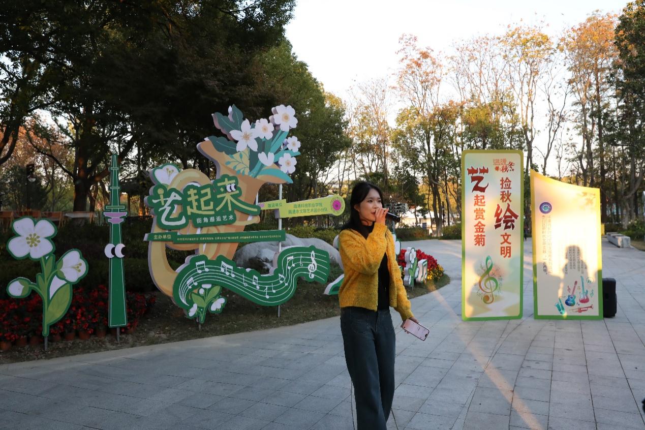 中国江苏网讯 “深秋嫩绿的垂柳,亲吻着我额头,在那座阴雨的小城里,我从未忘记你。”近日,一场以“‘艺’起赏金菊 捡秋‘绘’文明”为主题的温暖秋冬新时代文明实践活动在文峰公园举行。沉浸式的街头演出与自然美景交融,吸引众多市民驻足欣赏。