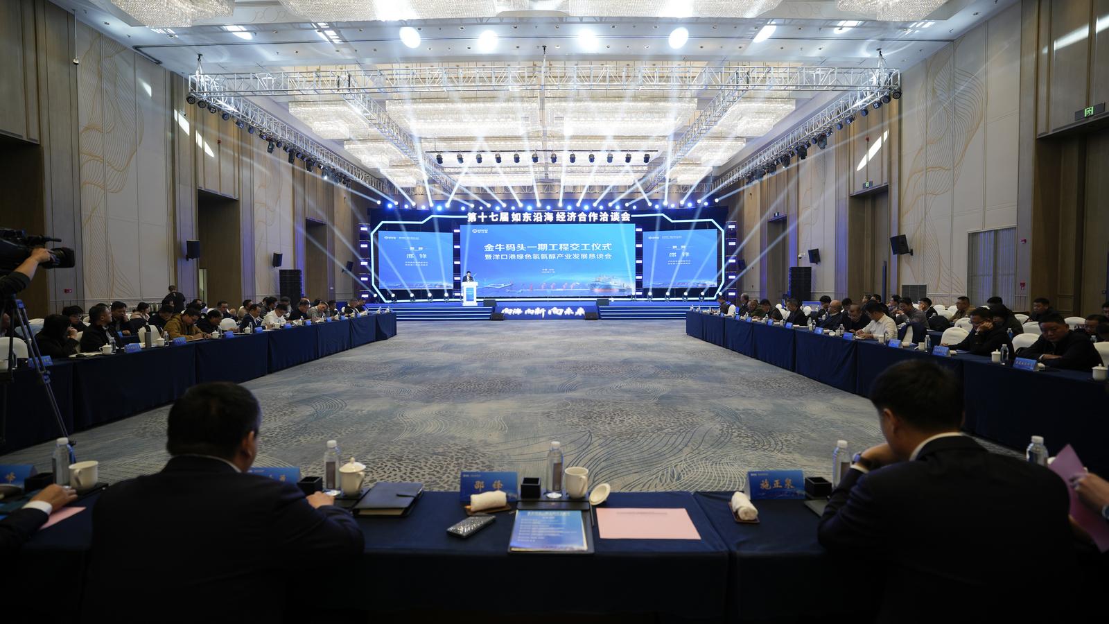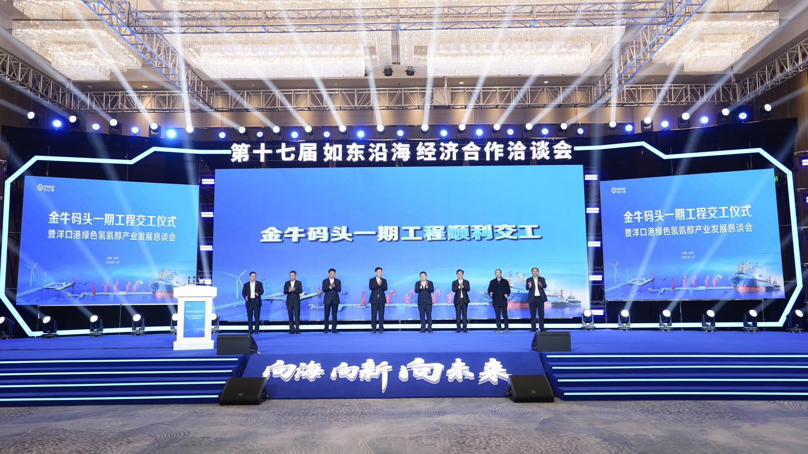 “绿色氢氨醇产业是蓬勃发展的新兴产业,也是发展新质生产力的重要领域。今天交工的金牛码头,不仅是洋口港完善功能布局、提升物流能级的关键基础设施,更是如东布局绿色氢氨醇产业、打通‘产运储’全链条的重要支撑。”如东县委副书记、县长邵锋表示,如东在发展氢氨醇产业方面具备不少特色优势,已建成全国规模最大的海上风电产业集群,丰富的海上风电资源,可为绿氢制备提供稳定可靠的“绿电”支撑;建成全国最大的LNG能源岛,充足的LNG冷能可用于合成绿氨;如东还是农业大县,养殖种植业发达,拥有充足的生物质原料,可作为绿氢制备的补充能源载体;完善的港口物流体系,可为氨醇运输和国际贸易构建高效通道。