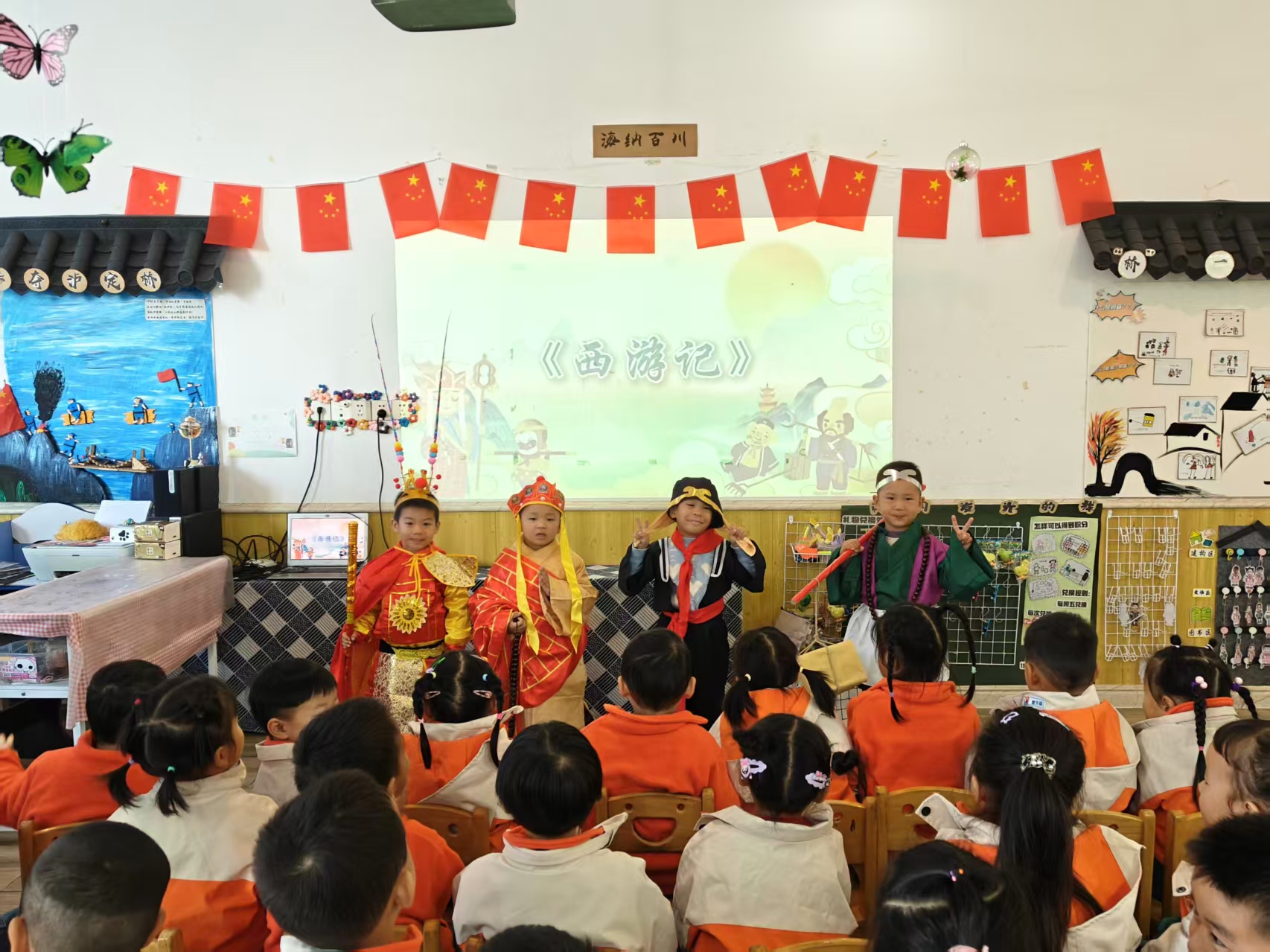 童心变行者,妙趣演西游。“俺老孙来也!”一声清脆呼喊拉开活动序幕,“西游小剧场”在活动室热闹开演。孩子们纷纷化身故事中的人物:“小悟空”挥棒灵动,“小八戒”憨态可掬,“小唐僧”双手合十,念诵有模有样。在这个小小舞台上,孩子们不仅体验了经典情节,更在角色演绎中锻炼了表达能力。原本静止的文字,化作生动的游戏,阅读兴趣在表演中被点燃,真正实现了从“阅读”到“悦读”的跨越。