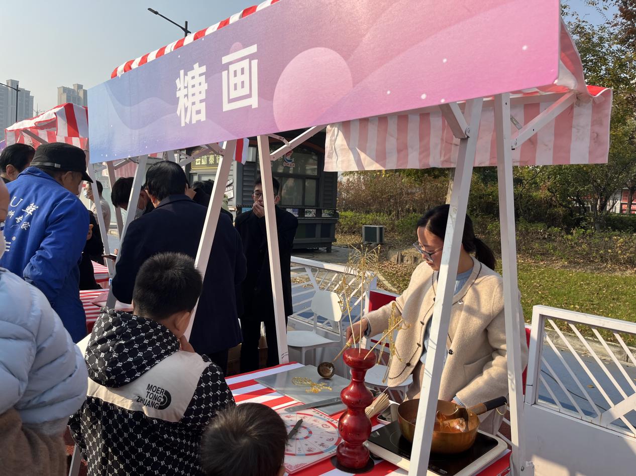 文化娱乐与政策普及区域同样热闹非凡。糖画摊位前聚集了一群孩子,认真观看手艺人制作糖画。手艺人以糖作墨,手腕轻转,一个个形态各异的糖画作品很快就完成了,引得孩子们发出惊叹。“平时对这些政策法律都不太清楚,今天听了网格员的解答终于弄明白了。”政策咨询与普法宣传摊位前,网格员们与志愿者一起向居民发放宣传资料和普法手册,向居民们宣传普及法律知识,耐心解答居民疑问,引导居民增强法治意识,学会用法律武器维护自身合法权益。