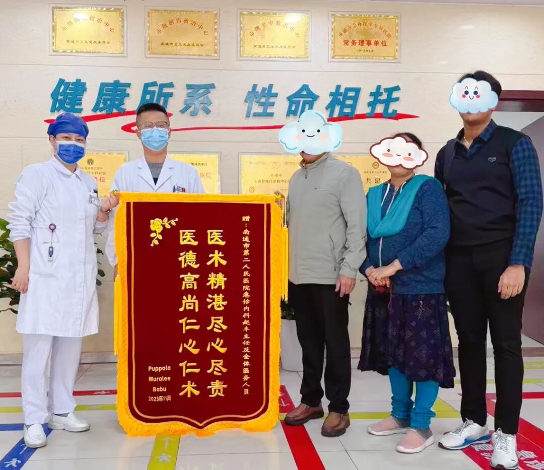 中国江苏网讯 11月24日清晨8时30分,冬日里的南通市第二人民医院因一份特殊的谢意暖意融融。在通跨国企业印度籍高管Mr.Puppala携妻子与儿子,手捧两面鲜红锦旗,郑重赠予医院急诊科与神经内科的医护团队。