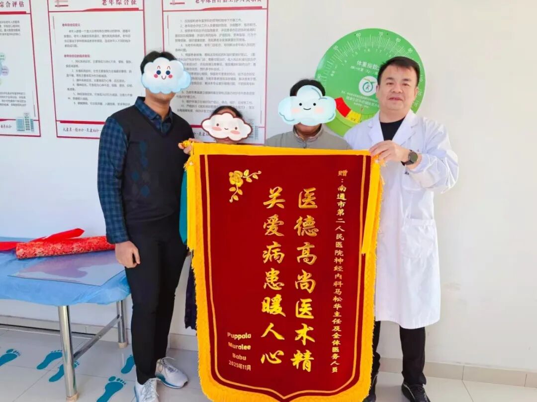 “我恢复得非常好,感觉非常棒,没有一点儿后遗症。”送锦旗的时候,Mr.Puppala反复表达着劫后余生的感激之情和康复的喜悦,而神经内科马松华主任也在继续为其调整后期用药,助力完成康复的“最后一公里”。