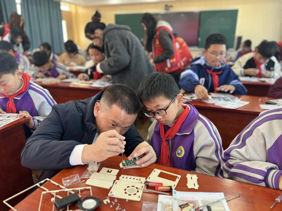 为进一步巩固青少年的国家认知与文化认同,在制作“红色主题收音机”的环节,志愿者们通过讲述了革命年代里一部部无线电设备在关键时刻传递情报、连接指挥的红色故事,将“永不消逝的电波”所蕴含的忠诚、信仰与智慧精神融入其中。制作过程中,志愿者们耐心指导,从电路连接到木壳组装,不仅传授专业知识,更在孩子们遇到困难时鼓励他们学习革命先辈的钻研精神。当一台台亲手组装的收音机陆续传出《我的祖国》等红色经典旋律时,大家的脸上洋溢着自豪与感动。“亲手打造的音响中传递出的爱国之声,让孩子们不仅在声波中触摸了历史,更在动手实践中将红色的种子深植心田。”一名桥小青志愿者说道。