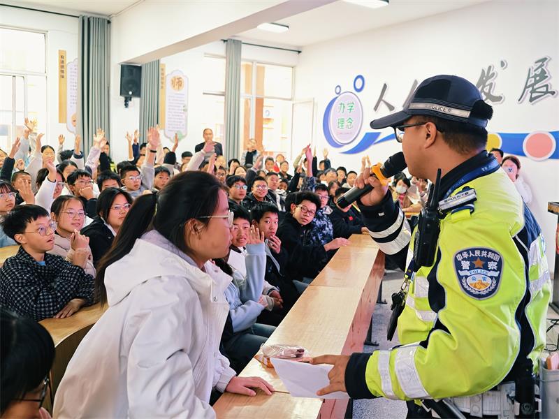 活动现场,民警针对中学生日常出行场景,如步行、骑行、乘车等,采用“案例讲解+展板展示+互动问答”的多元宣讲模式。他们用通俗易懂的语言,从“过马路走人行横道、骑行电动车需年满16周岁”等基础常识,到“拒绝超员车辆、安全佩戴头盔”等关键要求,结合真实事故案例,深入剖析违规行为的严重后果,让学生们直观地感受到交通安全的重要性,打破了传统说教的局限。