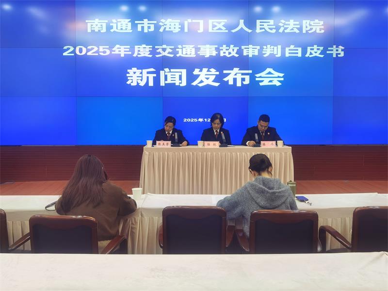 中国江苏网讯 12月2日,在第十四个“全国交通安全日”来临之际,海门法院召开2025年度交通事故审判白皮书新闻发布会。该院三厂法庭庭长陆艳、法官助理陈伟进行发布。