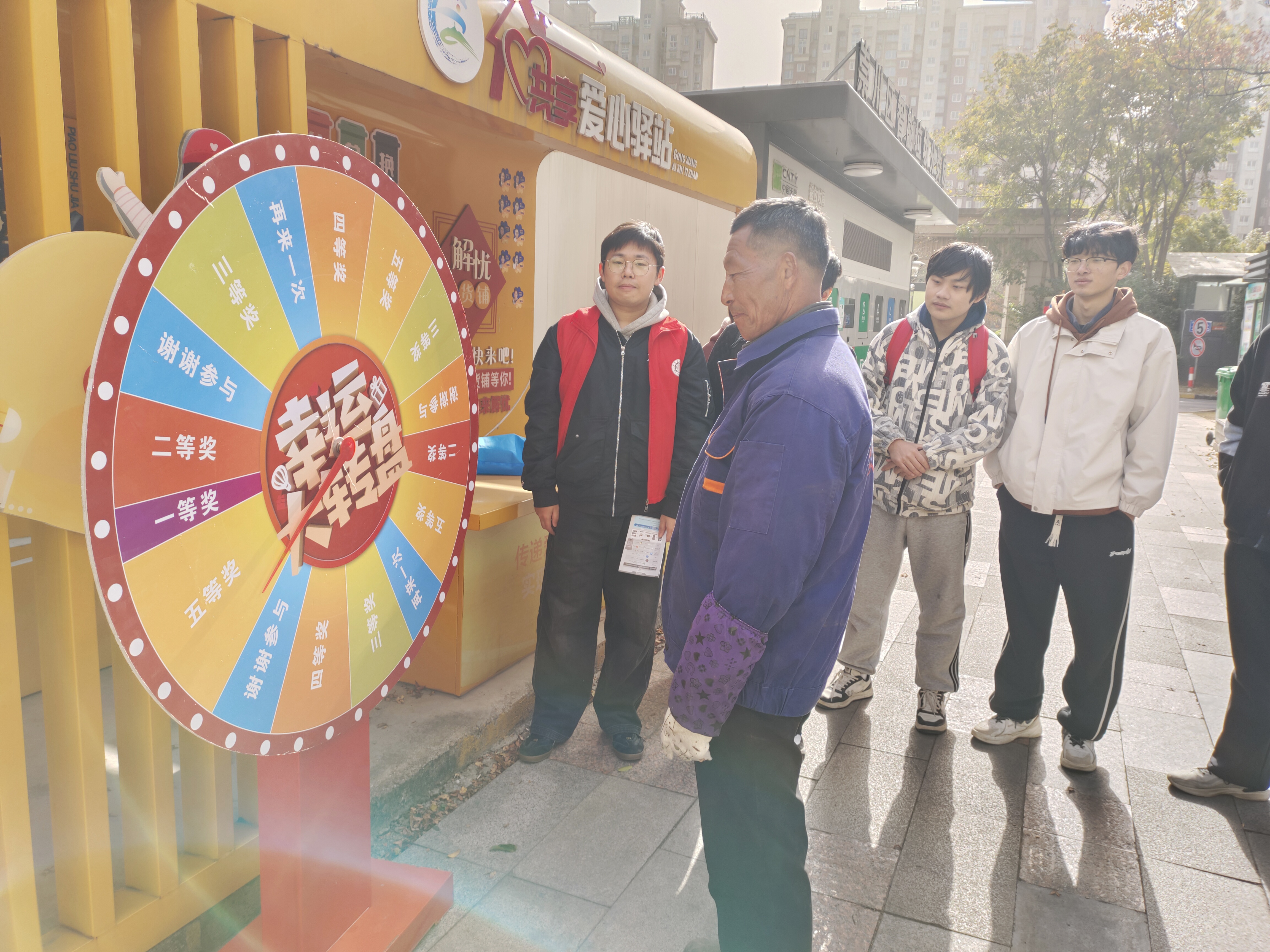 活动最后,还设置了幸运大转盘抽奖环节,为积极参与活动的群众送上小奖品。这份小小的鼓励不仅调动了大家的参与热情,更让群众在收获快乐的同时,加深了对垃圾分类重要性的认识。此次校地携手的志愿服务活动,不仅为群众提供了学习垃圾分类知识的平台,也展现了青年志愿者的责任与担当,为推动街道垃圾分类工作常态化、长效化开展奠定了良好基础。(韩子豪)