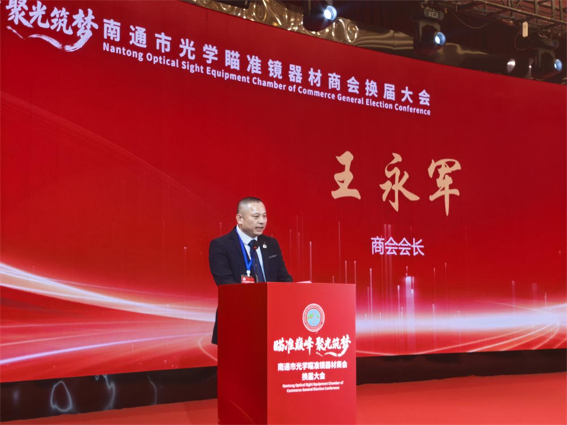 中国江苏网讯 12月4日,南通市光学瞄准镜器材商会换届大会在文峰饭店圆满举行,政府主管部门代表与近150名企业家齐聚一堂,共同谋划行业高质量发展新路径。诚信光学董事长王永军在此次换届大会上高票当选该会第三届会长,为商会发展注入新动力。