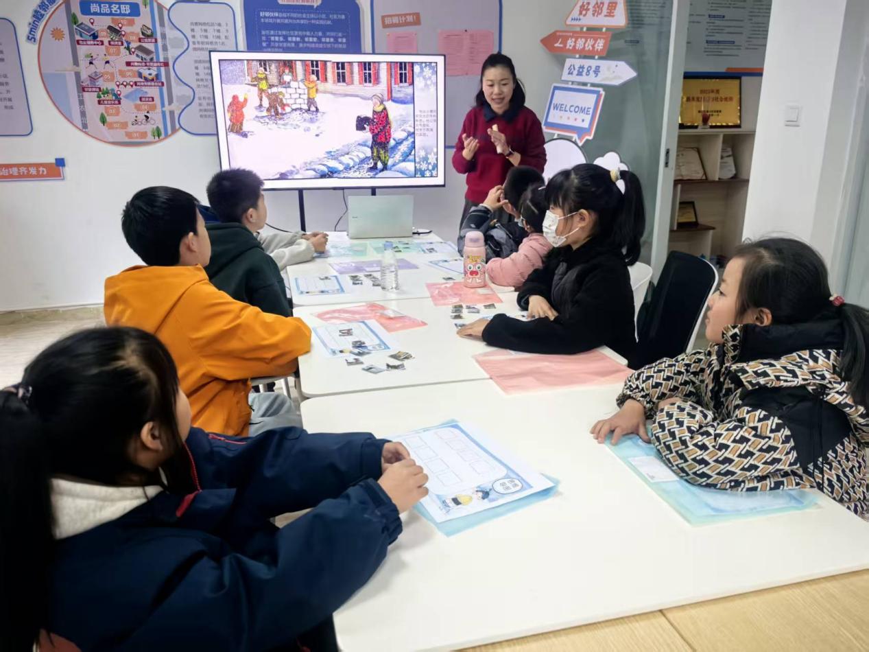 “大雪,十一月节。大者,盛也。至此而雪盛矣。”社区志愿者吴丹丹化身“节气讲解员”,用生动通俗的语言为孩子们揭开了大雪节气的神秘面纱。从古籍释义,到大雪时节气温骤降、万物蛰伏的气候特点;从南方庭院中踏雪寻梅、细嗅暗香的清新雅致,到北方街巷里腌肉储菜、储备冬粮的人间烟火,为大家娓娓道来。孩子们纷纷举起小手,迫不及待地分享自己的发现与疑问,志愿者则为他们一一解答。问答间,节气知识与民俗韵味悄然浸润童心。