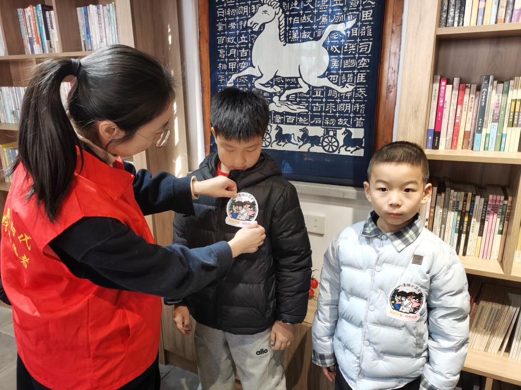 第二环节“戴徽上岗,实地巡检”,实践检验真知。工作人员为每位青少年郑重贴上了特制的“清朗小卫士”徽章贴纸。佩戴上徽章的孩子们,眼神中顿时充满了使命感与责任感。他们化身成为“小小监察员”,在志愿者带领下,兴致勃勃地走进书店或阅览空间,开展一次特别的“体检”行动。孩子们运用刚学到的知识,认真翻阅书籍,仔细查看版权页、印刷质量,在实践中巩固辨别技能。这场沉浸式体验,不仅锻炼了他们的观察力,更让“维护正版、抵制盗版”从一个概念转化为可感知、可参与的具体行动。
