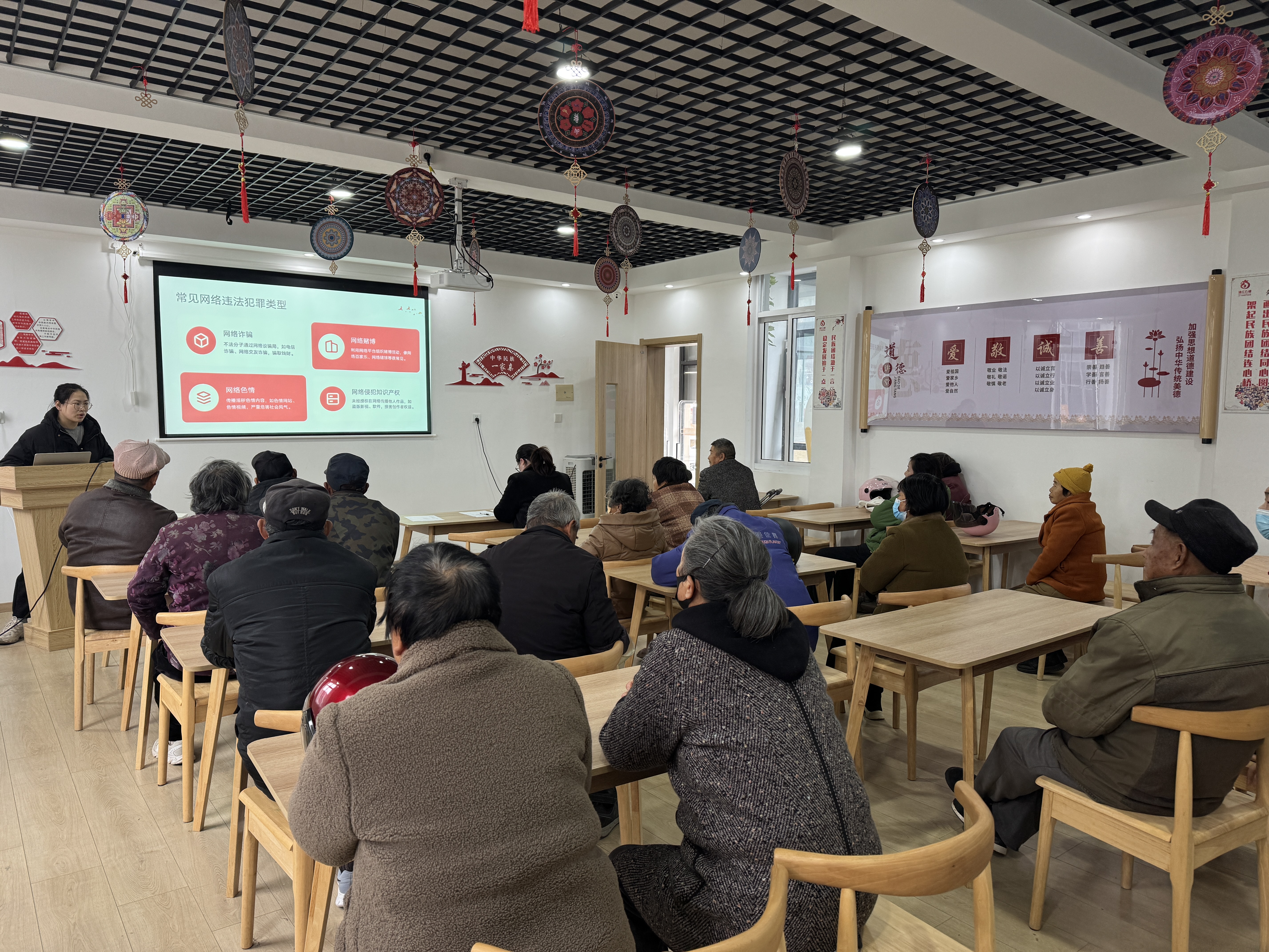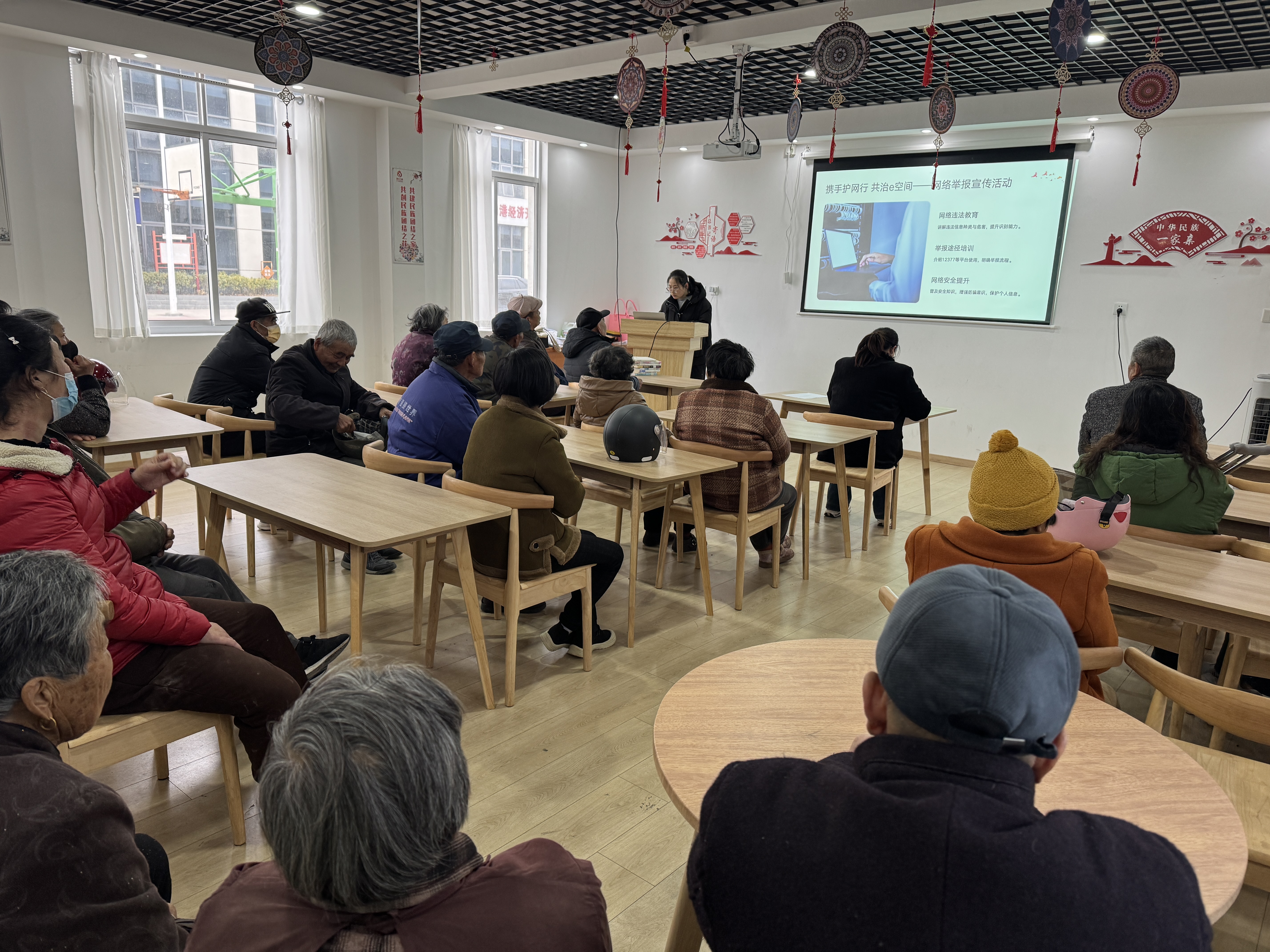 为丰富社区居民冬季精神文化生活,提升居民健康养生意识,弘扬中华优秀传统文化,增强非物质文化遗产保护与传承观念,同时响应构建清朗网络空间的号召,提升居民网络素养与安全防护能力,南通市如东县长沙镇港城社区新时代文明实践站于2025年12月22日在社区活动中心开展了“冬日暖阳,和谐港城”系列活动。通过“阅读+养生”“知识+非遗”“宣传+共治”的融合模式,营造温暖、健康、文明、和谐的社区氛围,增进邻里情感,提升社区凝聚力。