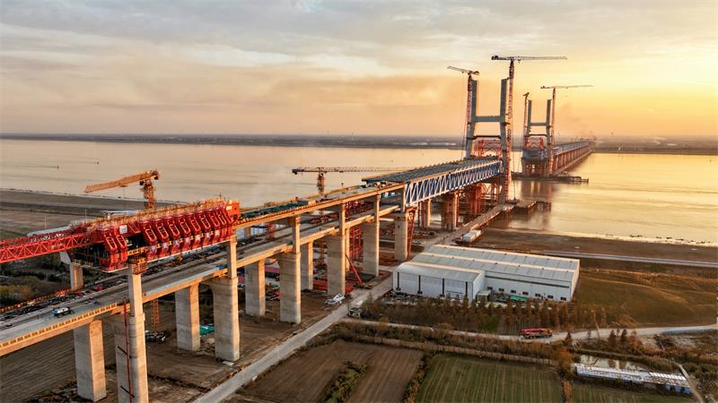 中国江苏网12月31日南通讯 12月30日,从中铁大桥局新建上海至南京至合肥高铁沪宁段站前V标项目部获悉,世界最大跨度公铁两用无砟轨道斜拉桥——崇启公铁长江大桥已完成总工程量的85%,主塔封顶、非通航孔钢梁顶推等关键节点均顺利实现,全面进入斜拉索挂索阶段。根据施工安排,预计2026年5月将实现主桥合龙,标志着这项“大国工程”在“十四五”收官与“十五五”开篇之际取得关键进展。