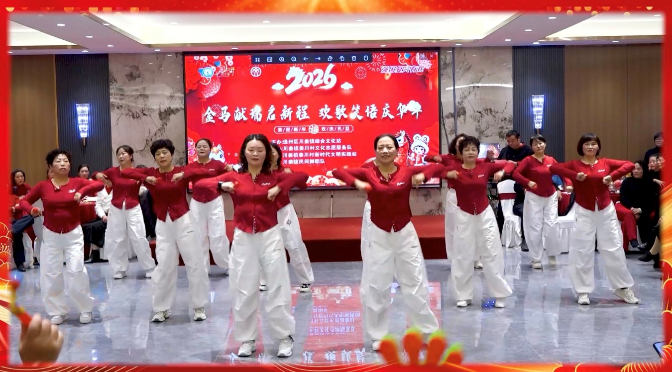 中国江苏网讯 为进一步丰富辖区村民的精神文化生活,营造浓厚节日氛围,2026年元旦期间,由通州区川姜镇新时代文明实践所与姜川村新时代文明实践站联合主办的“金马献瑞启新程 欢歌笑语庆年华”元旦文艺汇演在姜川村精彩上演。活动以群众喜闻乐见的文艺形式,推动党的创新理论“飞入寻常百姓家”,将优质文化服务延伸到基层末梢,让时代文明新风浸润百姓心田,为建设和美乡村、推进乡村振兴注入了鲜活的文化动能。