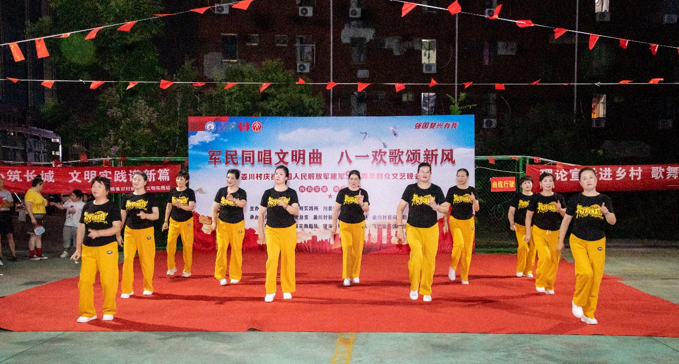这些精彩演出背后,是姜川村对乡土文化人才队伍持之以恒的培育。近年来,村“两委”积极引导,将原先分散的文艺爱好者凝聚起来。以瞿建菊等骨干为代表,吸引了退休农人、返乡能人、文艺热心人加入,组建起独具本村特色的民间舞蹈队。队员们利用农闲和晚间时间,在村文化广场坚持排练,借助网络教程自学互教,反复打磨每一个动作,凭借对文艺的热爱与对家乡的深情,创作编排出一系列接地气、有特色、受欢迎的优秀节目。队伍常年活跃于各类节庆舞台,成为乡村文化生活的中坚力量。其自编自演的“移风易俗”快板秀等节目,内容生动、形式新颖,深受村民喜爱,有效传播了文明理念,助推了乡风文明建设。
