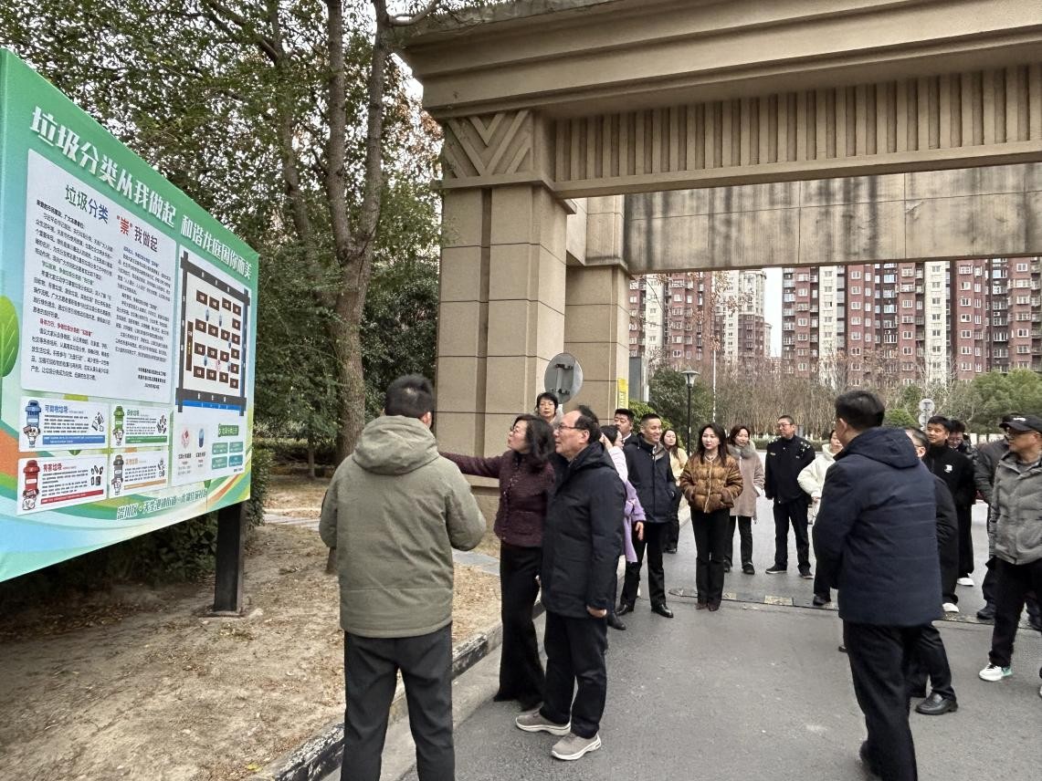 活动伊始,政协委员们一行实地调研了三八新村、滨湖新苑、龙庭景苑三个小区,现场查看垃圾分类厢房建设运维、居民分类投放实操、积分兑换机制运行等情况,直观感受街道在推进垃圾分类设施标准化建设、提升居民分类参与率、巩固分类工作实效等方面的积极探索与阶段性成效。