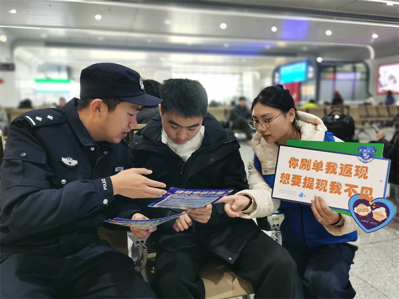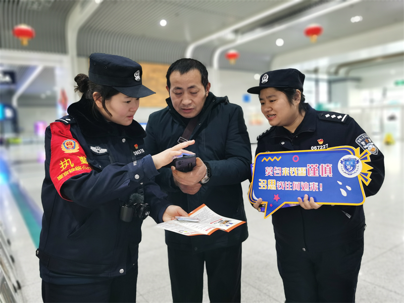 平潮派出所民警结合岁末年初治安特点,通过典型案例剖析、趣味问答等形式,重点宣讲电信网络诈骗、毒品犯罪等违法犯罪的防范技巧,发放宣传手册与平安小礼包,将法律知识融入日常。同时,民警现场向旅客群众展示110报警服务的宗旨、目标、受理范围、处理流程,普及110报警知识,宣传防骗、防盗安全知识,借助活动增强旅客群众的安全防范意识。