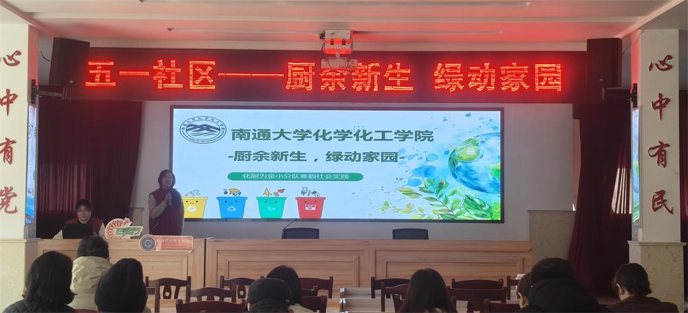 中国江苏网讯 1月9日下午,南通市崇川区文峰街道五一社区新时代文明实践站、五一社区工会携手南通大学化学化工学院志愿者团队,以“厨余新生,绿动家园”为主题开展了一场别开生面的垃圾分类宣讲活动,为社区居民和辖区职工带来了一场环保知识盛宴。