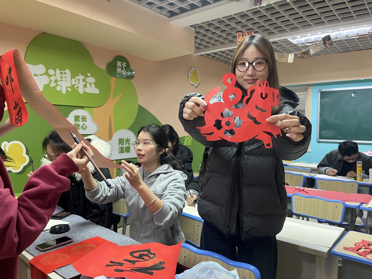 中国江苏网讯 1月9日,秦灶街道民安花苑社区新时代文明实践站联合南通大学杏林学院医学部青笺墨韵画年芳志愿服务队共同开展“纸间春意·联欢阅新”活动。活动现场,大学生志愿者为居民提供写对联、福字、剪窗花、阅读等服务,居民们在笔墨书香与指尖创意中提前感受新春气息。