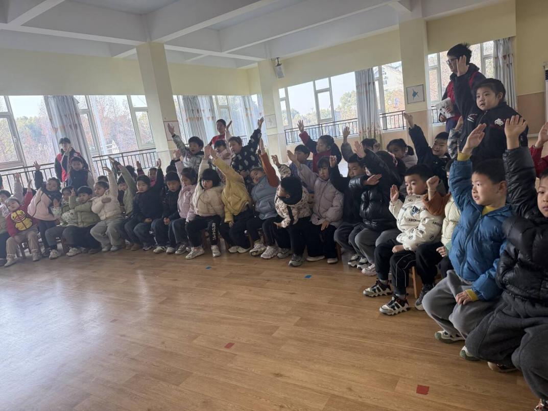 最后的“趣味知识小问答”将活动推向高潮。志愿者围绕“餐前要洗手”“不吃陌生人给的食物”“不吃过期食品”等贴近生活的问题进行提问,孩子们踊跃举手,争相回答。随后,全体师生齐唱食品安全儿歌,朗朗上口的歌词搭配简单动作,让孩子们在歌声中进一步内化安全常识。这一环节通过问答与合唱的形式,既检验了学习成果,也增强了活动的趣味性与感染力。