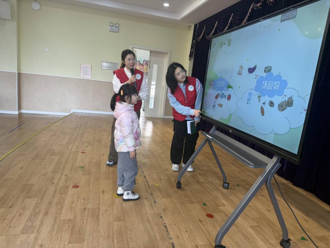 在“食品侦探小游戏”中,孩子们化身“小侦探”,学习查看食品包装上的关键信息。志愿者通过实物展示与互动提问,教孩子们认识生产日期、保质期、配料表等,并模拟场景,让他们找出“可疑食品”。一位小朋友兴奋地说:“我以后买零食要先看日期!”该环节不仅锻炼了幼儿的观察力,更将食品安全知识具体化、生活化,增强了他们在实际情境中的判断能力。