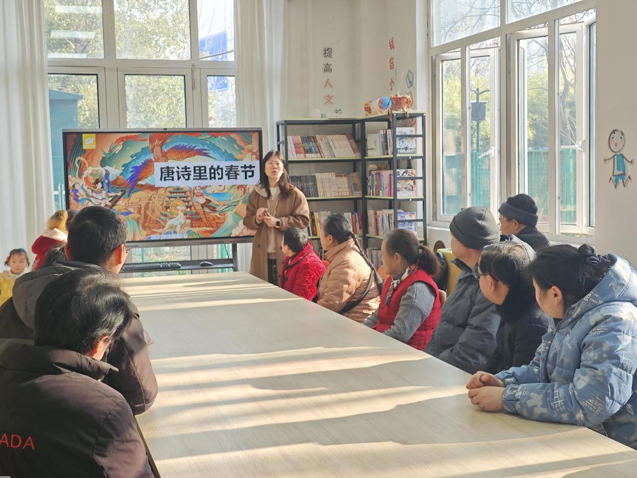 活动伊始,《全民阅读促进条例》的解读视频,直观传递阅读的重要意义,迅速引发现场群众对全民阅读的重视与共鸣。随后,国学新解《唐诗》精彩开讲,大家纷纷凝神静听。主讲人刘佳芸——花开远方文学社执行校长、教学负责人,同时也是区向日葵公益讲书团成员,以生动鲜活的讲述带领大家走进唐诗中的新春世界。