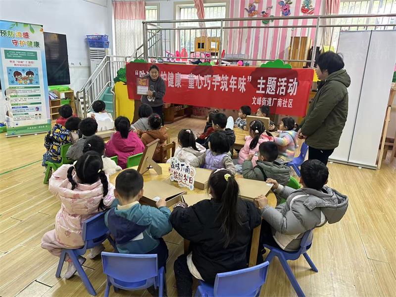 中国江苏网讯 1月15日,崇川区文峰街道厂南社区多部门联合辖区兆丰视情幼儿园开展“防流感护健康 童心巧手筑年味”主题活动。活动将健康知识与手工实践结合,既提升了幼儿健康防护知识,筑牢流感防控屏障,又传承文化、增添节日氛围。