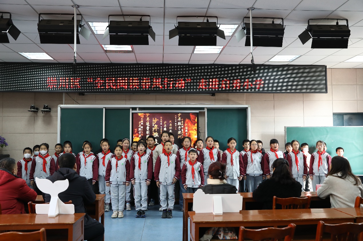 活动在启秀小学合唱团气势恢宏的《少年中国说》合唱中拉开帷幕,启秀小学党支部书记、校长樊正娟深情寄语,鼓励同学们以书为友,在阅读中汲取智慧。