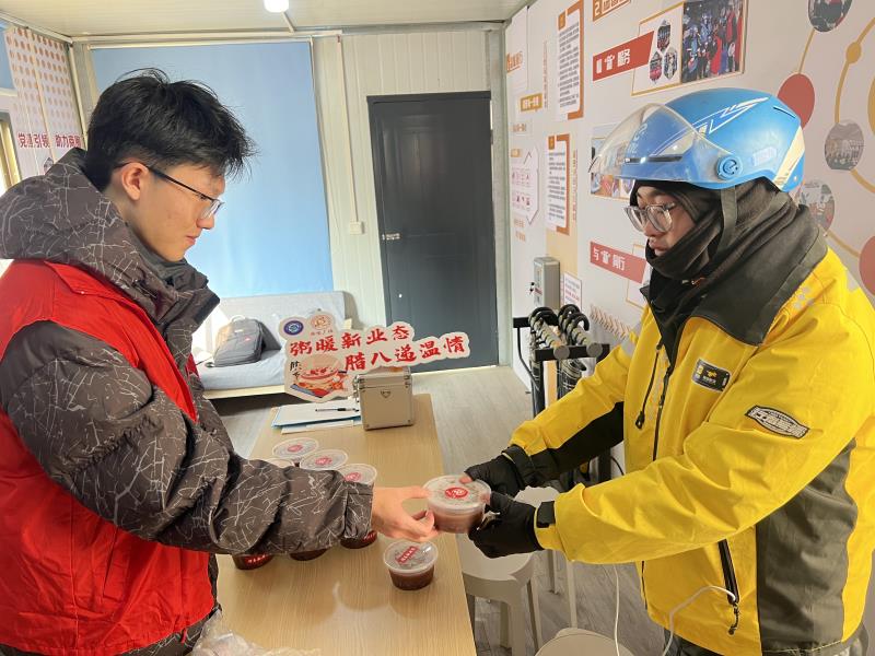 中国江苏网讯 1月23日,在传统腊八节来临之际,厂北社区党委、新时代文明实践站、工会、共青团等多部门组织开展“粥暖新业态腊八递温情”活动,为辖区快递员、外卖骑手等新业态从业者送上热腾腾的腊八粥与暖心祝福。