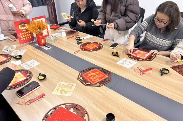 活动最后,是非遗手工制作环节,工作人员提前备好拓印纸、墨汁、拓印版等材料,现场手把手教学。从拓印版固定、墨汁调配,到均匀施墨、小心揭纸,每一个步骤都耐心讲解。参与者们专注其中,互相交流经验,书屋中满是忙碌又温馨的景象。不一会儿,一幅幅带着墨香的福字拓印作品相继完成,大家手捧成果,成就感满满,指尖传递的不仅是技艺,更是对新年的期许。