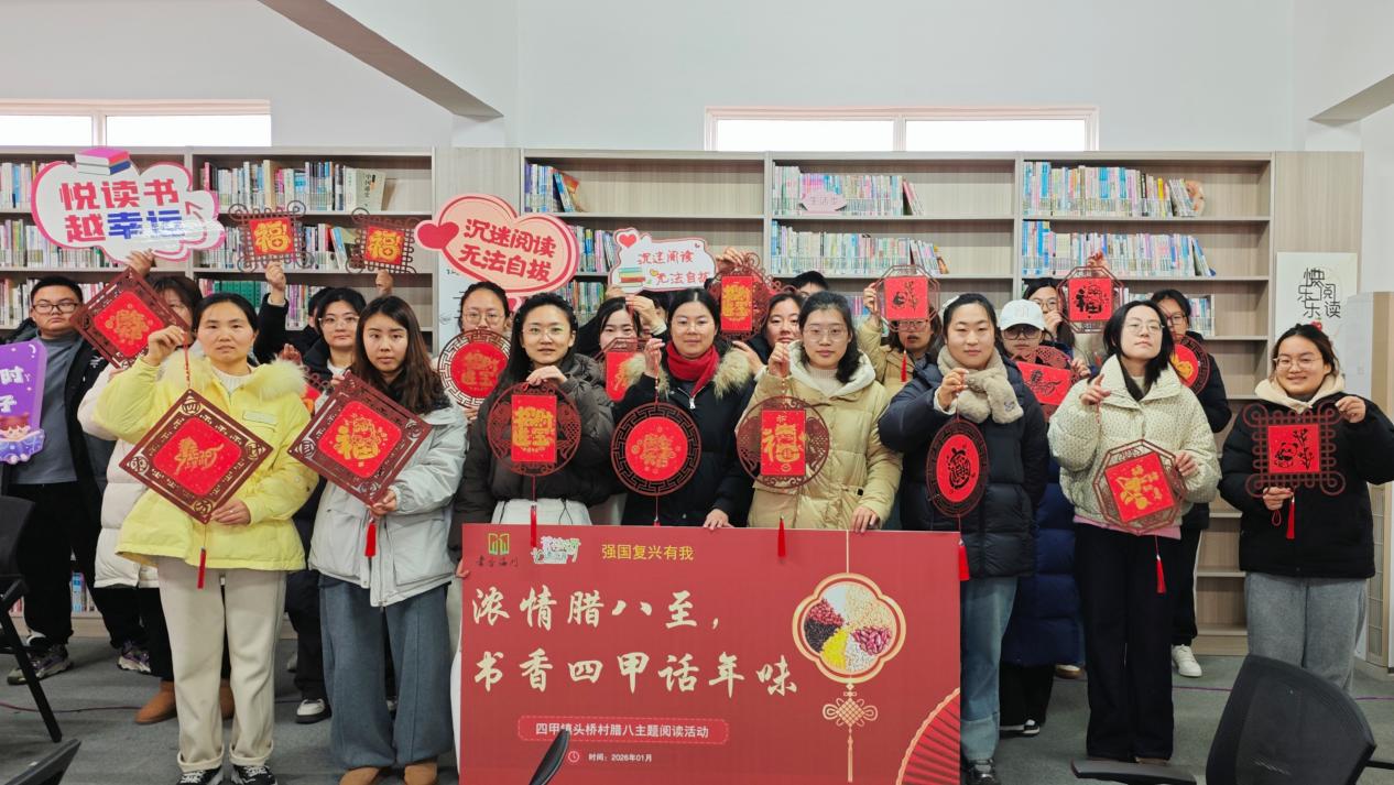 中国江苏网讯 腊月时节粥香暖,书屋灯下共佳节。为传承腊八文脉,丰富群众精神文化生活,1月26日,南通市海门区四甲镇头桥村农家书屋开展腊八主题阅读活动,围绕腊八民俗、诗词鉴赏、好书分享、知识问答、非遗手工等多个环节展开,将传统节日与现代阅读深度融合,活动吸引了辖区内诸多青年读者参与,大家一起沉浸式感受传统节日的独特魅力。