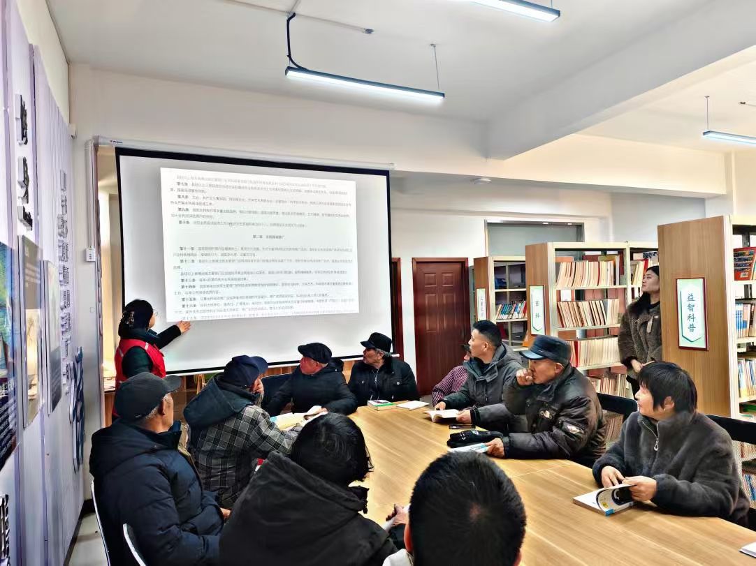 活动的最后环节,由新时代文明实践站的志愿者带领大家共同学习了近期颁布的《全民阅读促进条例》。志愿者通过简洁明了的PPT,介绍了《条例》出台的背景、意义、主要内容和亮点,重点讲解了国家鼓励和支持全民阅读的各项措施,以及保障不同群体阅读权益的相关规定。志愿者号召大家养成爱读书、读好书、善读书的习惯,积极参与村里后续将定期举办的各类阅读活动,共同把乡村的书香气营造得更浓厚。学习过程中,村民们认真聆听,不时点头,对政府推动阅读的力度有了更深了解,也对未来黄金村阅读设施和活动的进一步完善充满了期待。