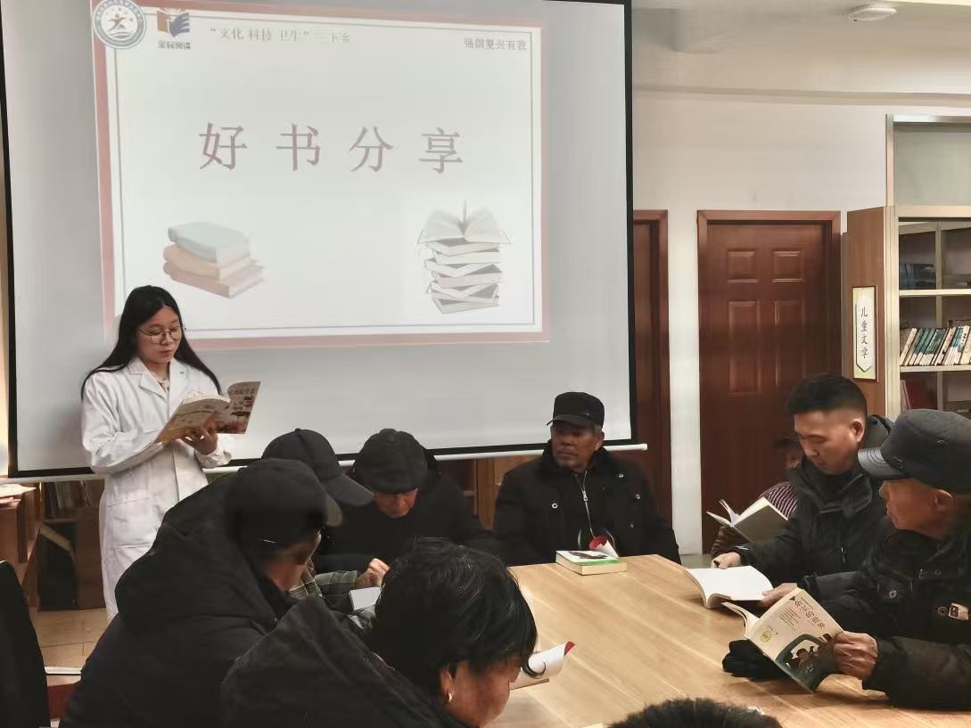 随后的“好书推荐与分享”环节将活动推向第一个小高潮。新时代文明实践站的志愿者首先登台,结合新春佳节的传统氛围,特别推荐了冯骥才先生的《俗世奇人》系列中关于年俗的篇章,以及《过年书》等民俗文化读物。志愿者生动讲述了书中描绘的腊月忙年、祭灶守岁、拜年庆贺等传统习俗,勾起了在场村民们对往昔年味的回忆,也让大家对传统节日文化有了更深理解,现场气氛温馨而热烈。紧接着,村卫生室的曹医生作为特邀分享人,带来了实用的健康科普。她不仅推荐了《中国居民膳食指南》等权威读物,更结合本地饮食习惯和春节饮食特点,用通俗易懂的语言讲解了节日期间如何做到均衡营养、避免暴饮暴食,以及慢性病患者的饮食注意事项等知识。曹医生的分享贴近生活、干货满满,尤其强调了“欢乐过年,健康不减”的理念,赢得了阵阵掌声,大家笑言:“听了曹医生的话,今年年夜饭桌上更要吃得科学、吃得健康了!”